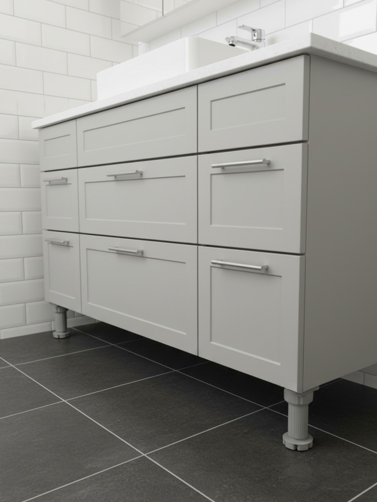- Esnek Yükseklik, Maksimum Konfor: 10 cm ile 15 cm arasında kolayca ayarlanabilir yükseklik seçeneği sunar. Bu esneklik sayesinde bazanızı, mutfak dolabınızı veya banyo erzak dolabınızı kişisel konforunuz ile zemin ihtiyaçlarınıza uygun ideal seviyeye zahmetsizce getirebilirsiniz.